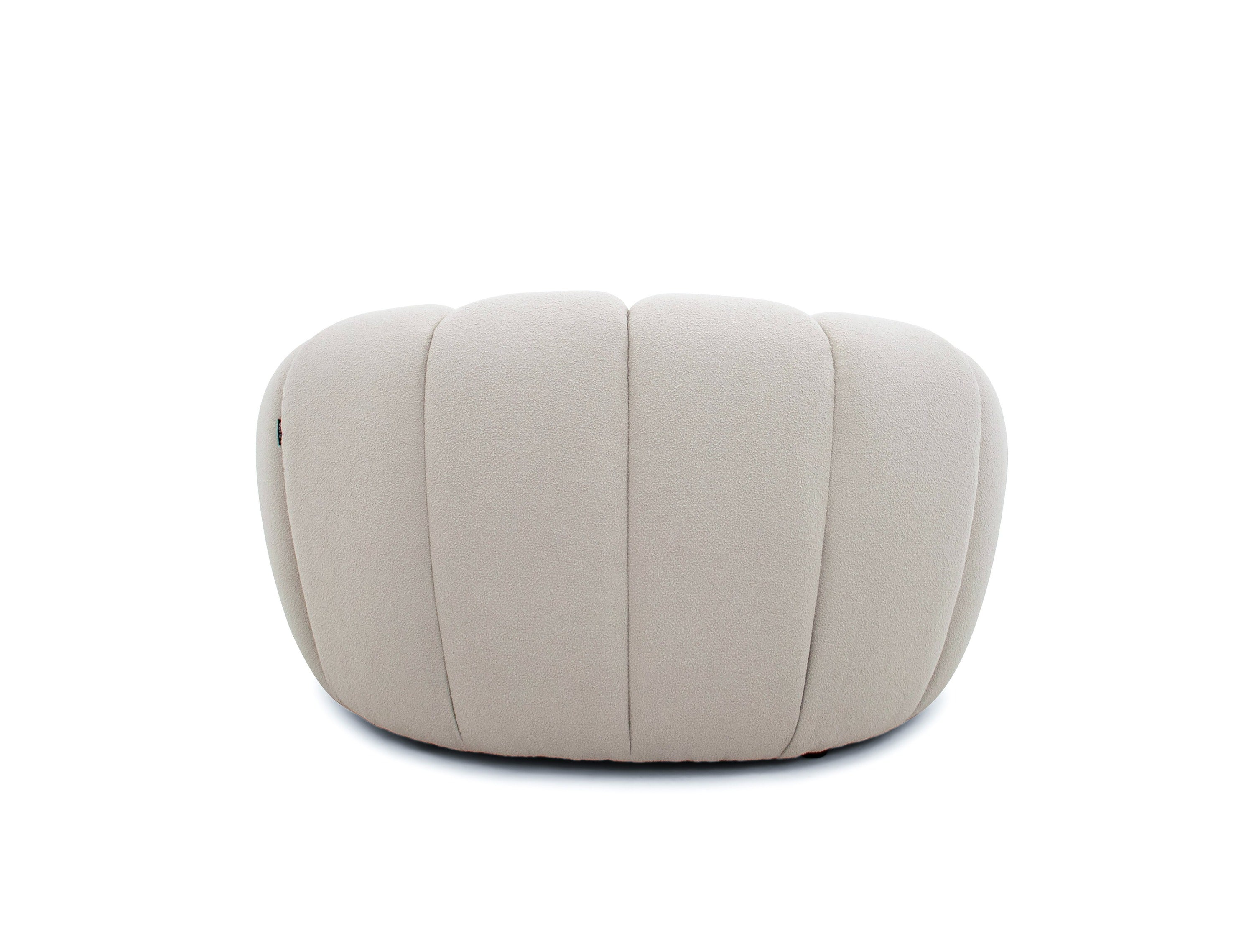 The newest addition to the Yolonda collection is the Curved Modern Beige Accent Chair. The hexagonal tufted cushions provide a unique, non-traditional and stylish design for the sofa as well the teddy fabric upholstery providing maximum comfort. The Yolonda also comes in a Sofa and Loveseat.