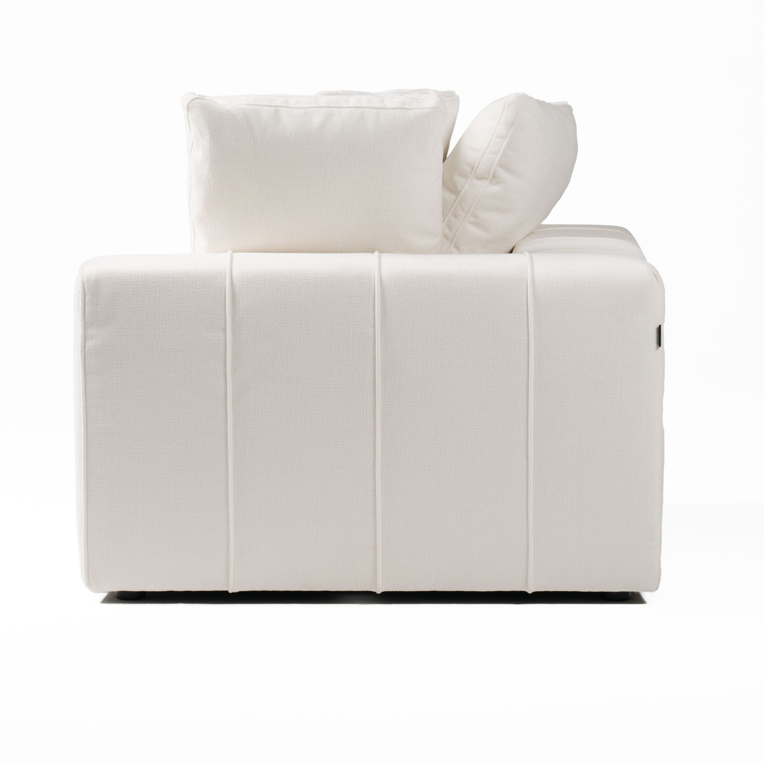 The Vicki Sectional redefines luxury with its contemporary lines and roomy seats. The set is modular and comes with three armless chairs, three corner pieces and one ottoman which allows you to set it up in the perfect configuration for your living space! The removable cushions and cushion covers make it incredibly easy to wash. The foam and fiber fill are soft, letting you sink in after a long day. The addition of the ottoman provides an additional place to sit or allows you to stretch out on the sofa. Capable of seating up to eight people, it is perfect for entertaining and goes perfectly in a coastal or farmhouse style home.