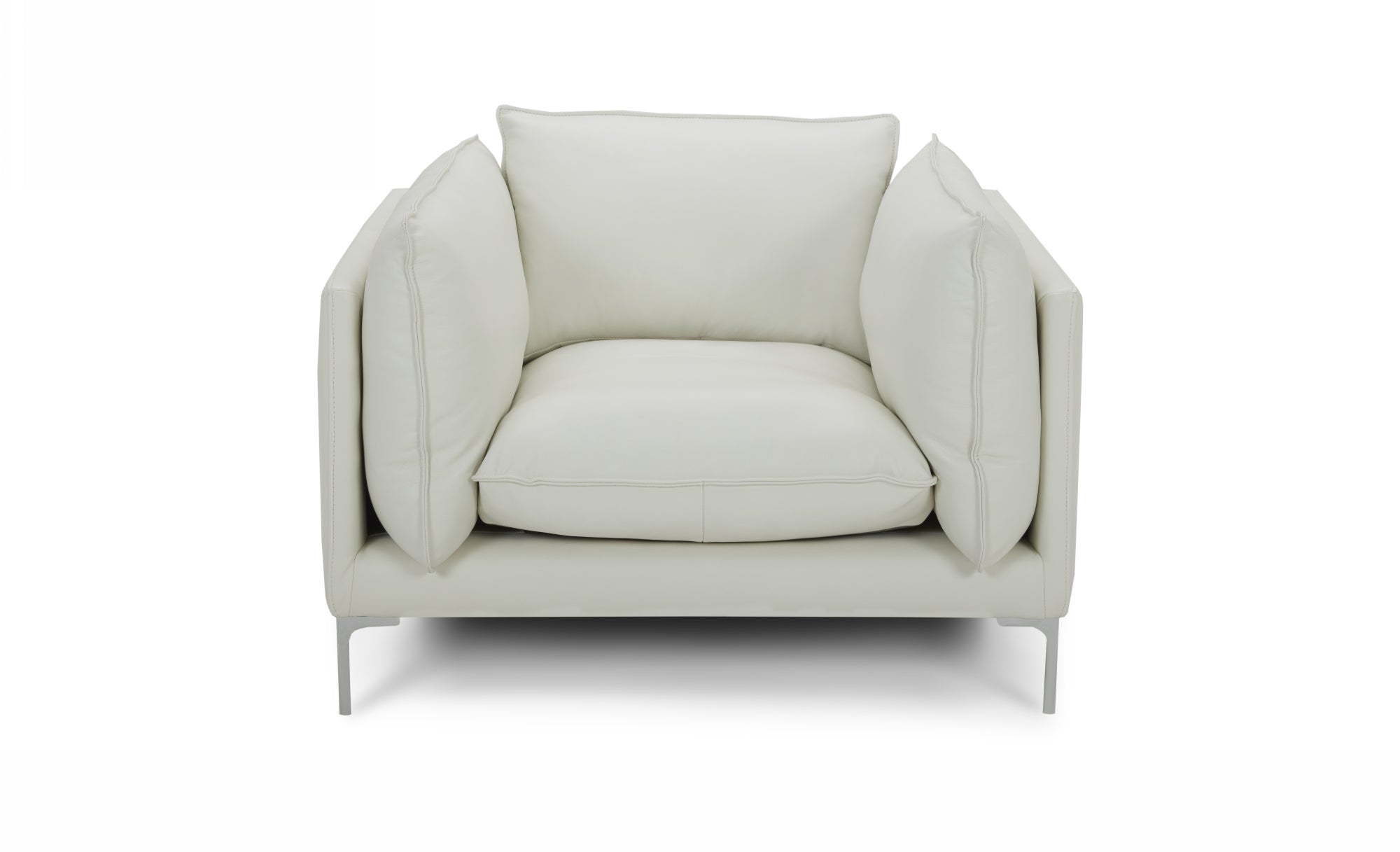 When you think of comfortable arm chairs, you probably think of something that has oversized cushions. This modern chair, which is available in white L-grade leather, is a chair that fits that bill. With its oversized seat and back cushions, and its two-arm cushions, this contemporary chair will provide endless style and comfort. Thanks to its self-welt detailed leather cushions, chrome bracket style legs and tight upholstered frame, this chair is every modern furniture lovers' dream.