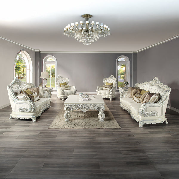 ACME Adara Pearl White Synthetic Leather & Antique White Chair with 2 Pillows Model LV01226