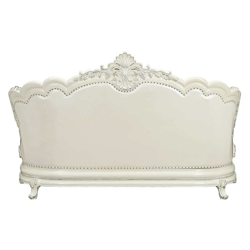 ACME Adara Pearl White Synthetic Leather & Antique White Sofa with 7 Pillows Model LV01224