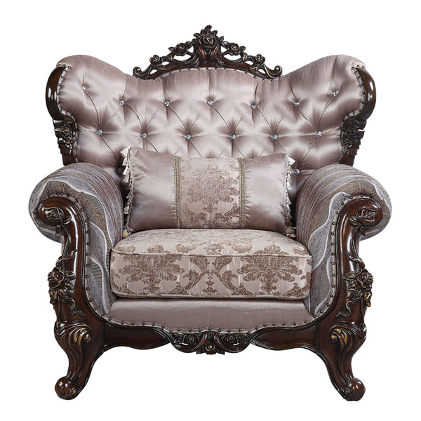 ACME Benbek Fabric & Antique Oak Chair with Pillow Model LV00811