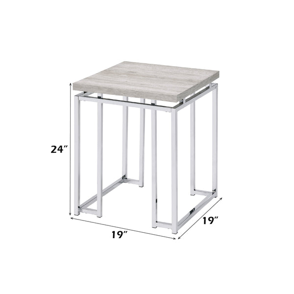 ACME Chafik Natural Oak & Chrome End Table Model 85372