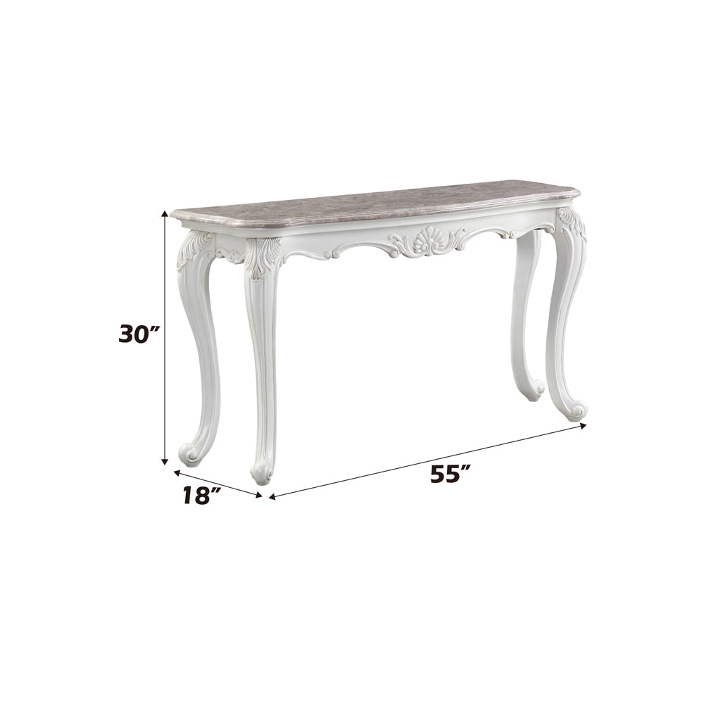 ACME Ciddrenar Natural Marble Top & White Sofa Table Model 84313