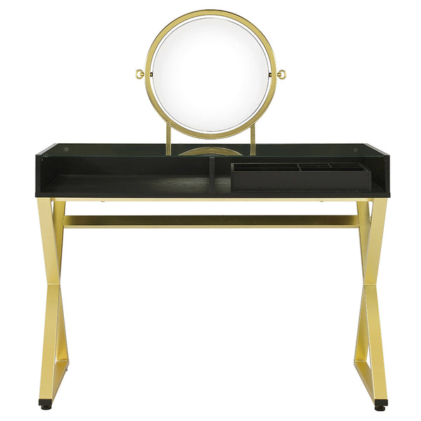 ACME Coleen Black & Gold Vanity Desk with Mirror & Jewelry Tray Model AC00669