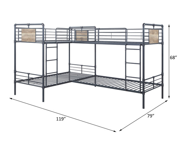 ACME Cordelia Sandy Black Dark Bronze Hand Brushed L Shape Bunk Bed (T/T/T/T) Model BD00370