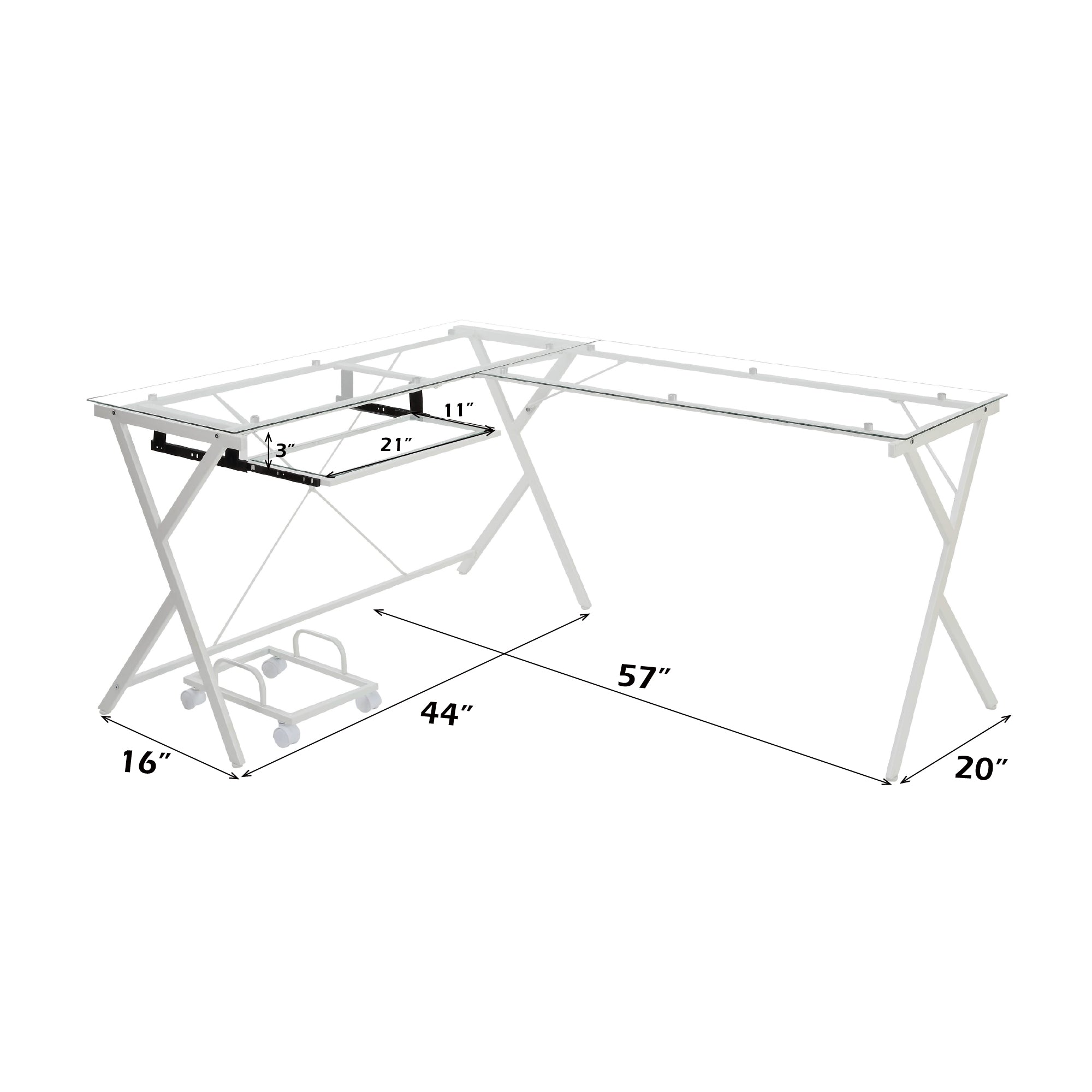 ACME Demas Clear Glass & White Computer Desk Model OF00048