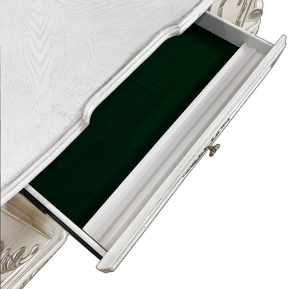 The Dresden executive writing desk is classic in style and will blend masterfully in your home. Carefully constructed from selected wood and veneers in a decadent antique white finish. Highly decorative details such as claw feet and decorative scrolled moldings give this executive desk an elegant and sleek appeal. Offering plenty of storage to help keep a clutterfree office space.