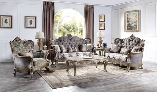 ACME Elozzol Natural Marble Top & Antique Bronze Sofa Table Model LV00304