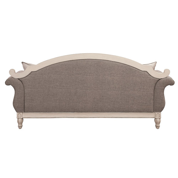 ACME Florian Gray Fabric & Antique White Sofa with 4 Pillows Model LV02119