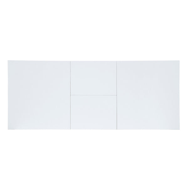This Gallegos dining collection adds a modern silhouette and a mix of glam materials to your dining room. It's crafted from a blend of engineered wood and stainless steel, and it showcases a shiny finish that's sure to make a style statement in your home. This table is built on a pedestal base with a Vshape design for an airy open look. The rectangular tabletop is finished in highgloss white for an elegant look that is also easy to clean. This dining table is ideal for seating up to eight people with its butterfly extension leaf.