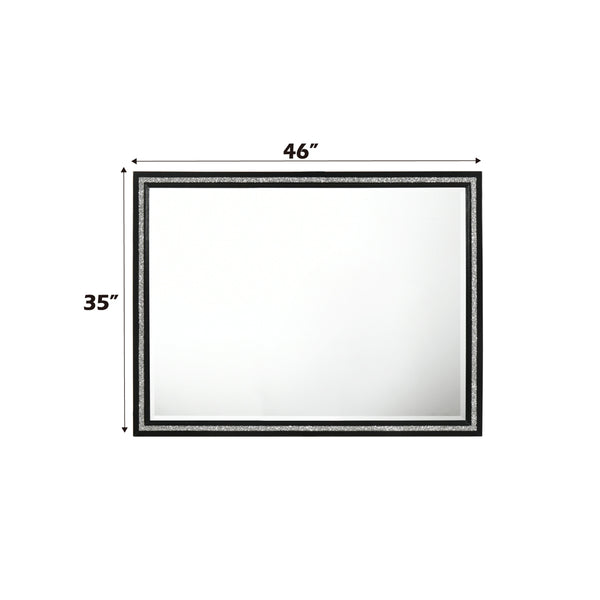 Classic design with touches of modern aspects makes this Haiden Mirror ideal for any bedroom. The rectangular mirror is easy to match your dresser for giving your space an alluring focal point. It also features a wooden frame with a glamorous shimmering silver accent trim that adds richness to design. The black finish makes it easy to fit into already existing decor.