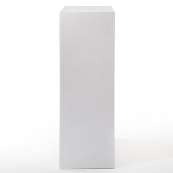The Ireland chest comes with five spacious drawers, perfect for all your foldable clothes from socks to sweaters. Each drawer features an English dovetail design with center metal Glides. Selected solid wood and engineered wood construct the frame, topped by wood veneers. A white finish completes the look. The drawer faces boast beveled tops and bottoms, equipped with nickelfinished metal knob.