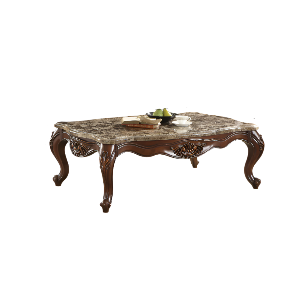ACME Jardena Natural Marble Top & Cherry Oak Coffee Table Model 81655