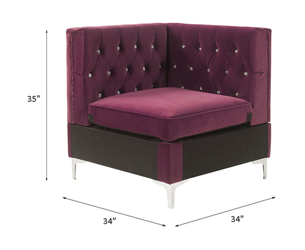 Nothing screams luxury like this Jaszira modular upholstery group. Each piece is enveloped in a luxurious velvet upholstery and showcasing button tufting, and a nail head trim accent for a tailored touch. Foam padding offers comfortable cushioning. Design the best configuration for your living space, this group has enough seating space for all your guests to comfortably lounge.