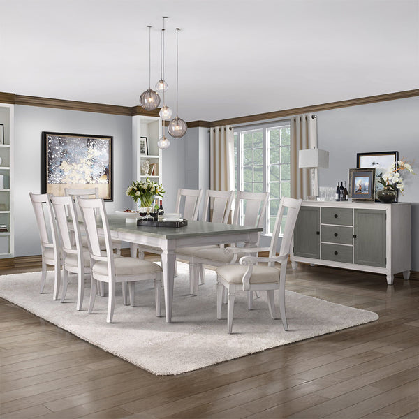 These Katia armchairs strike a balance between casual and chic. The weathered white finish is a classic combination that will go with all decor styles. These armchairs feature a weathered white wooden frame, with an open slat back design for an airy feeling. The seats are padded with foam and upholstered in gray linen. These chairs will help create a welcoming feel to your dining room where you will be hosting guests and making memories for years to come. Sold as a set of two chairs.