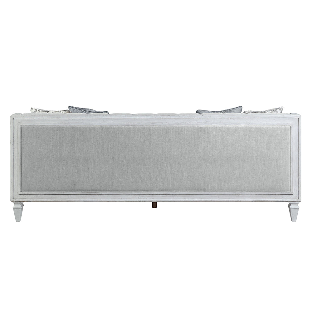 ACME Katia Light Gray Linen & Weathered White Sofa with 4 Pillows Model LV01049