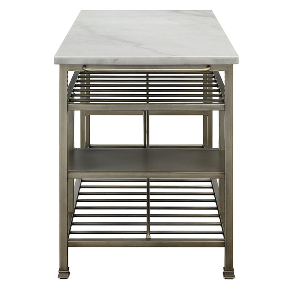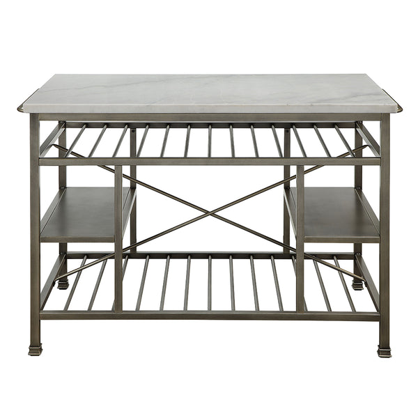 ACME Lanzo Natural Marble Top & Antique Pewter Kitchen Island Model 98402