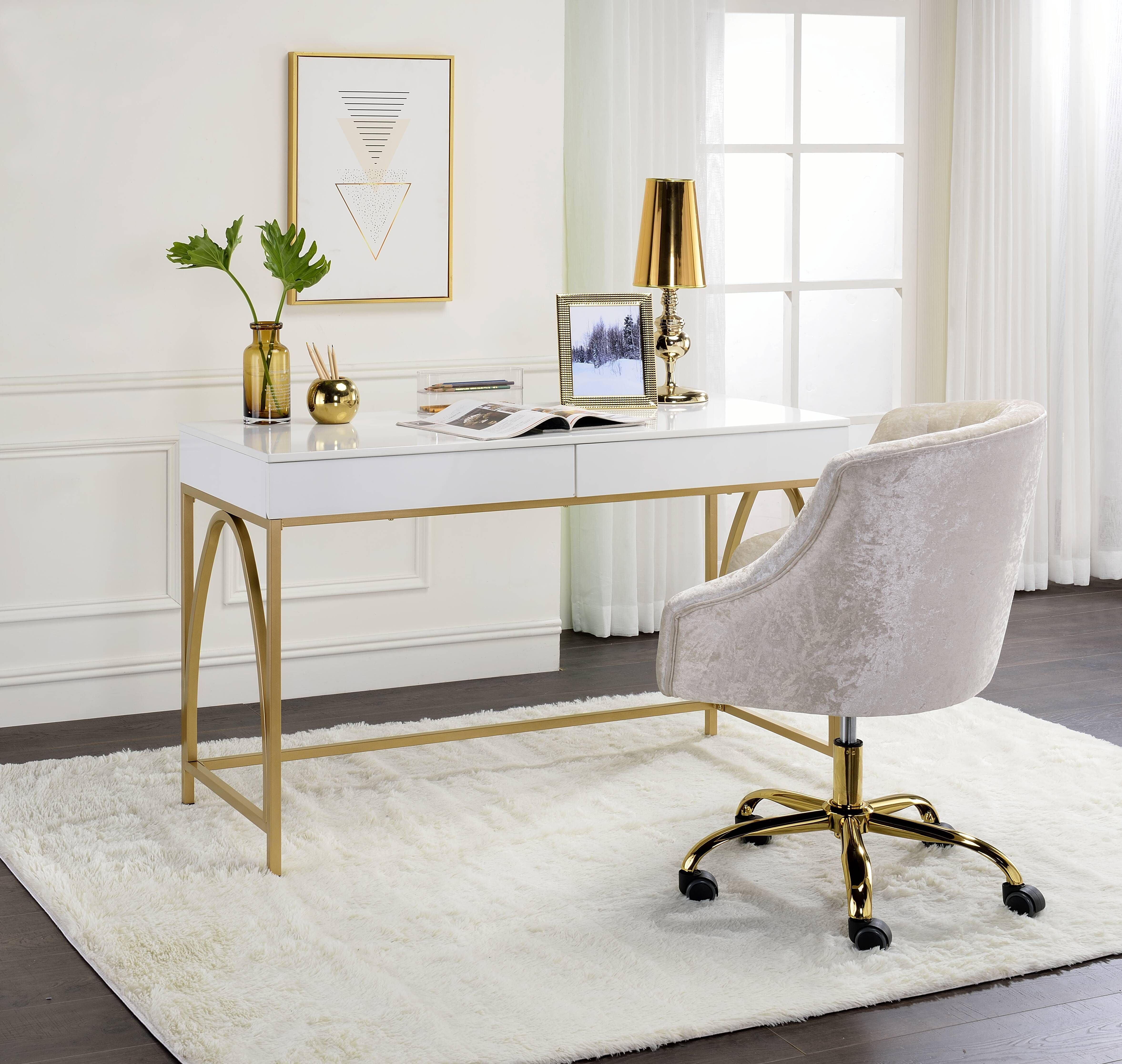 ACME Lightmane White High Gloss & Gold Vanity Desk(Same 92660) Model AC00900