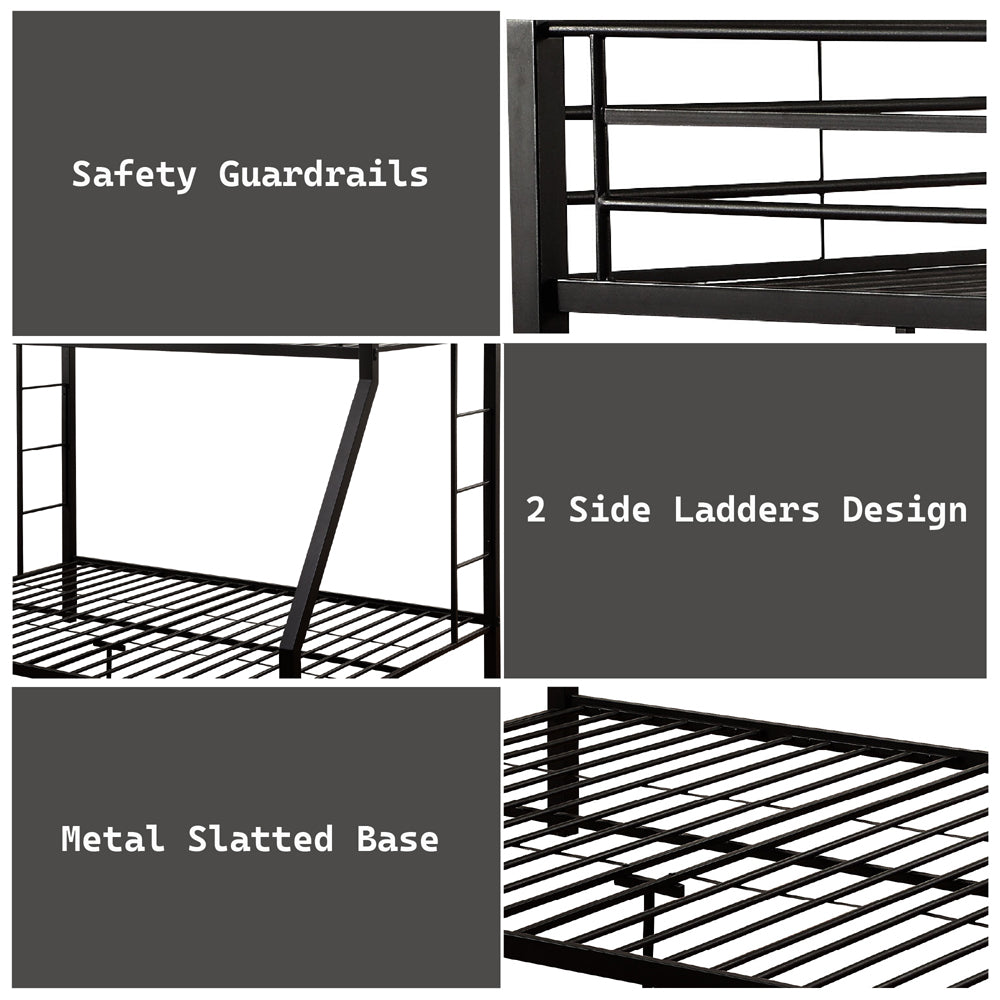 The Limbra contemporary bunk bed collection is an ideal choice for any youth bedroom. Featuring sturdy metal construction in black sand finish, metal slat system included, two builtin side ladders, and fulllength guardrails that will keep your child safe.