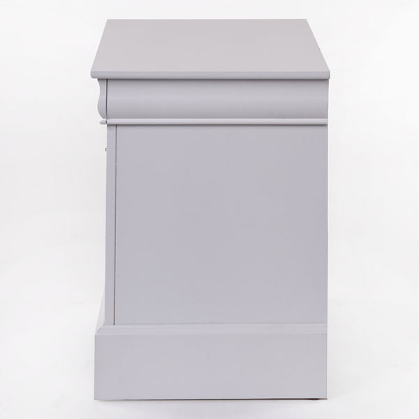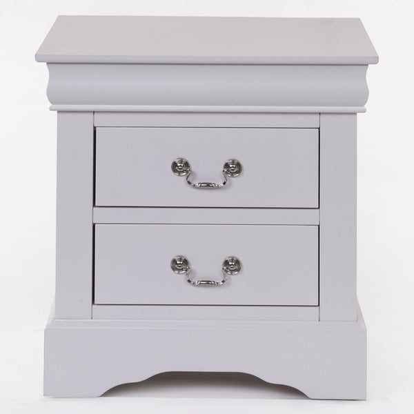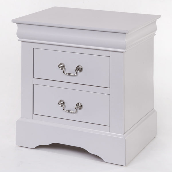 The Louis Philippe III collection nightstand comes in black, cherry, white, and antique gray finish. It has two drawers with center metal Glide and brushed nickel metal handle. Offers you plentiful storage with spacious drawers