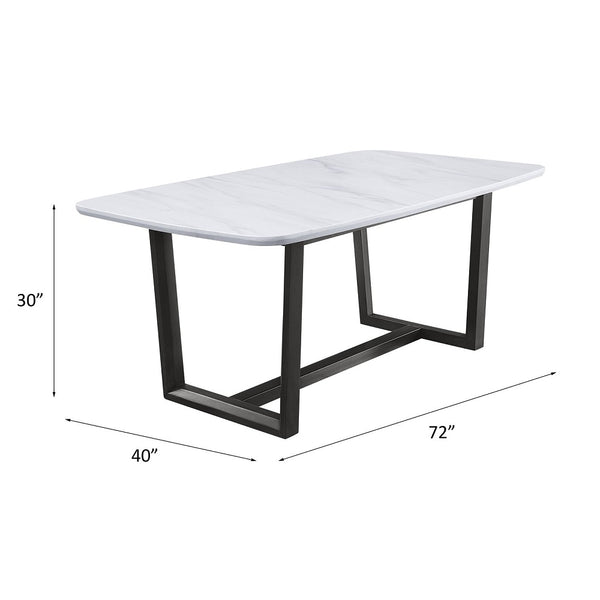 Bold, straightlined wood work paired with a cool textured marble top creates this stunning modern minimalist work. The dining table is founded atop a wood trestle base shown in weathered gray finish. White rectangular marble top features beautiful and elegant grains, making your dining area feel brighter and more spacious. With clean, graceful lines and simple color scheme, the Madan Dining Table can work well in rooms of all styles.