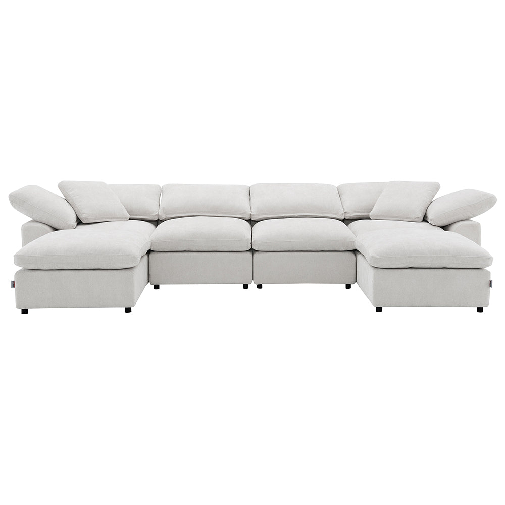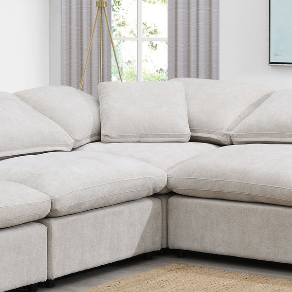Complete your living room with the unique design and sinkin comfort of the Naveen modular collection. Add both contemporary and modern taste with this beautiful group wrapped in a relaxing hue fabric. This group comes with multiple seating options of wedge, armless chair and ottoman. You may build your own configurations to fulfill any need.