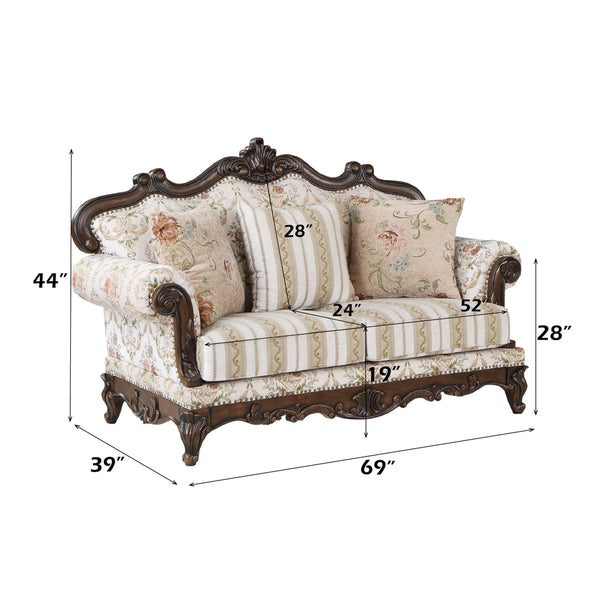 ACME Nayla Pattern Fabric & Walnut Loveseat with 3 Pillows Model LV01274