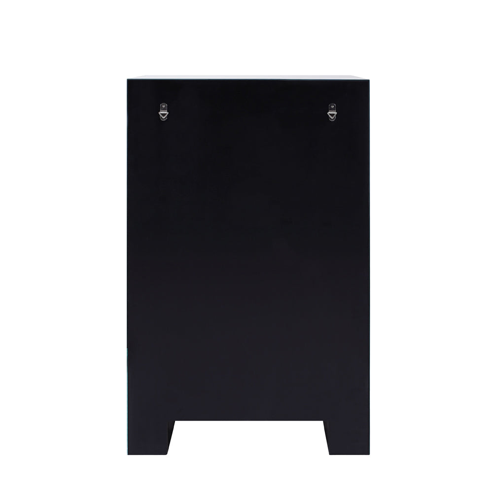 Drawer: Glide Side Metal (_ Ext.), Dovetail French, Full Black Finish Inside (Felt NOT Included), Safety Stop Included, Manual Close, Hardware: Single Knob, Sparkling Faux Gem