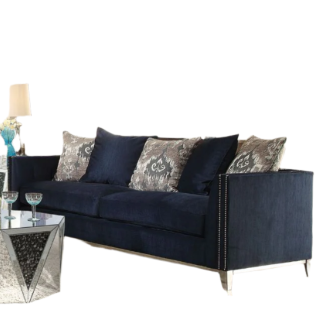 What is this item: ACME Phaedra Blue Fabric Sofa w/5 Pillows Model 52830
