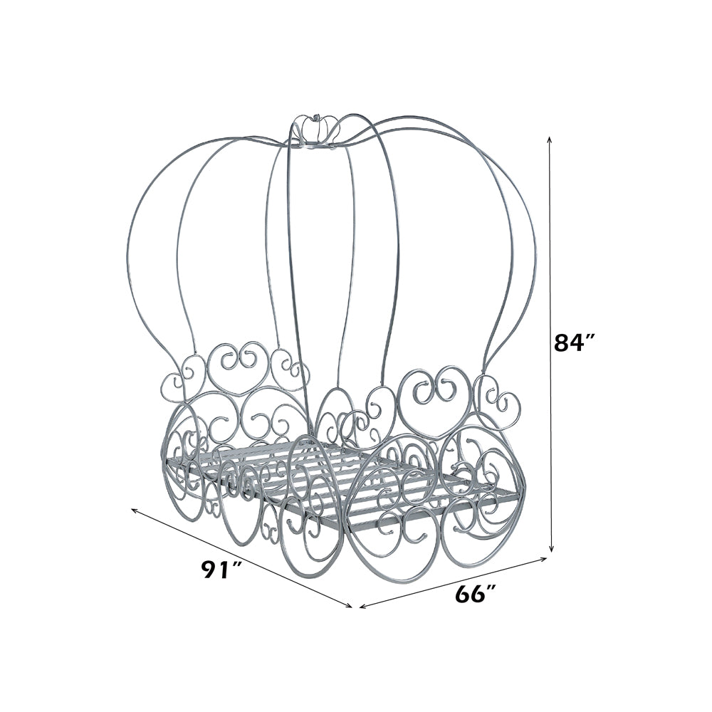 The Priya Canopy bed will create a wonderland in your princess's room. Its metal scrolled lines in a silver finish create a warm, classic look that will easily coordinate with all room decor. A crown on top of the frame adds the charm and beauty into this elegant bed. Fit for your princess, this carriage bed will be the perfect addition to her bedroom!