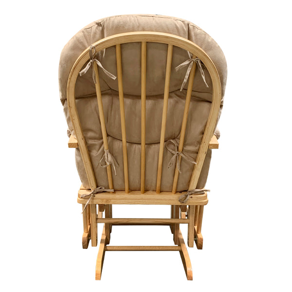 The Rehan Glider Chair & Ottoman will add a comfortable and stylish look to your den or bedroom. The natural oak finish frame is made from Rubberwood for durability, with a foampadded taupe microfiber upholstery for comfort. The ottoman gives you a spot to place your feet while you lounge.
