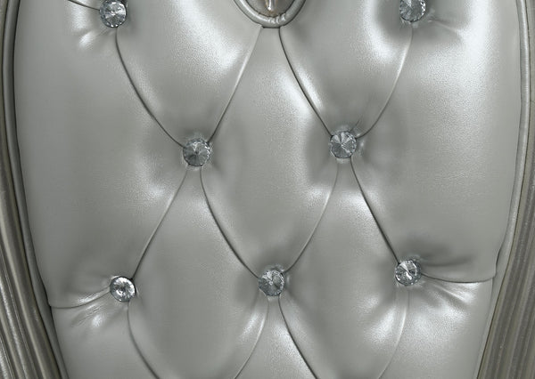 Give your dining space an elegant update with the Give your dining space an elegant update with the Sandoval dining collection in silver. No need to travel back in time to achieve a regal look in your home. Pick from a round or rectangular pedestal table. Both tables are beautifully detailed and offer a glass tabletop to protect the wooden surface. The matching chairs are not spared of any beauty, they are adorned with a crown and have PU seats and backrests along with crystallike buttontufted backrests for added glamour. With the option of a curio or server to round off the collection. dining collection in silver. No need to travel back in time to achieve a regal look in your home. Pick from a round or rectangular pedestal table. Both tables are beautifully detailed and offer a glass tabletop to protect the wooden surface. The matching chairs are not spared of any beauty, they are adorned with a crown and have PU seats and backrests along with crystallike buttontufted backrests for added glamour. With the option of a curio or server to round off the collection.