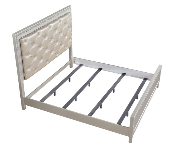 ACME Sliverfluff Synthetic Leather & Champagne Eastern King Bed with LED Model BD00238EK