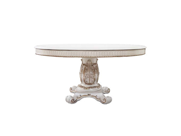 ACME Vendome Antique Pearl Round Dining Table with Pedestal Base Model DN01222