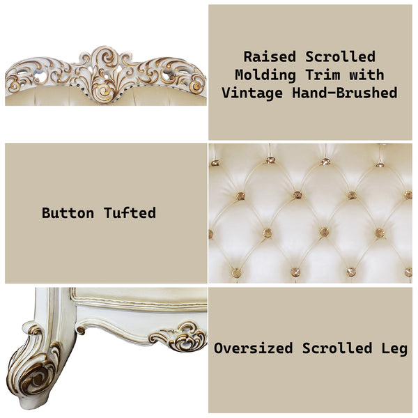 Oversized Scrolled Trim: Vintage HandBrush, Nailhead (Backrest, Front Armrest & Base)