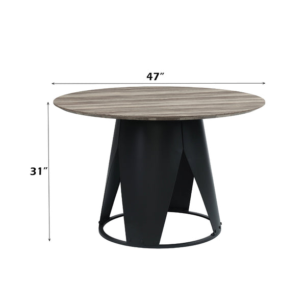 ACME Zudora Antique Oak & Black Round Dining Table Model DN01948