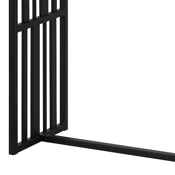 Embrace the charm of industrial design and the warmth of rustic aesthetics with this remarkable Zudora sofa table to create a captivating piece that adds character and style to your living room area. The warm tones and aged appearance of the tabletop exude a sense of rustic elegance, adding depth and character to the overall design. The double pedestal metal base of the table is the epitome of industrial chic. With slatted detailing, the metal base adds a touch of modernity and ruggedness to the table's aesthetic. The black finish enhances the industrial look, providing a bold contrast against the antique oak tabletop finish.
