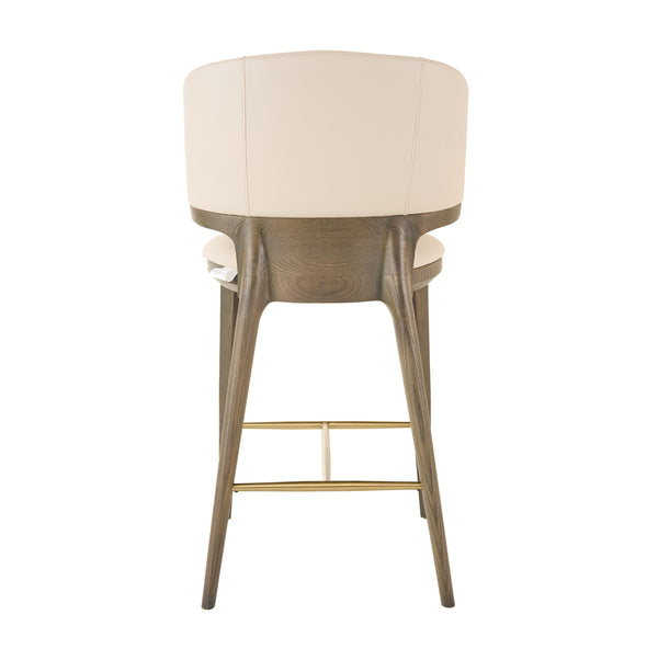 The Modrest Calvary Mid-Century Modern Counter Chair exudes elegance with its sleek design featuring beige vegan leather upholstery and a sophisticated grey ash frame. The gently contoured backrest ensures comfort, while the minimalist silhouette enhances any contemporary space. A subtle gold footrest adds a touch of glamour, making this bar stool not only practical but also a striking statement piece for kitchens or entertainment areas. Perfect for those who appreciate both style and function, this chair seamlessly blends modern aesthetics with timeless charm.