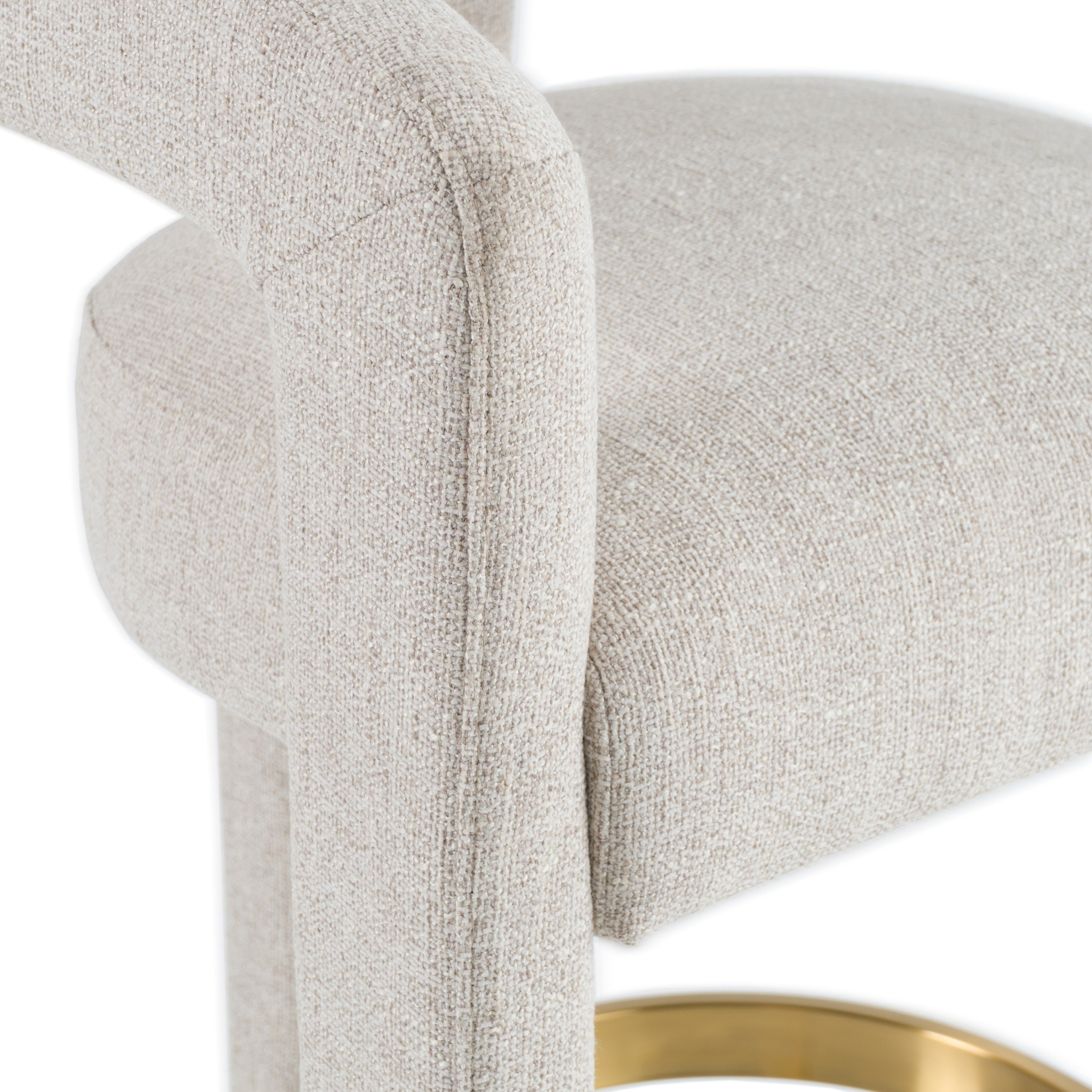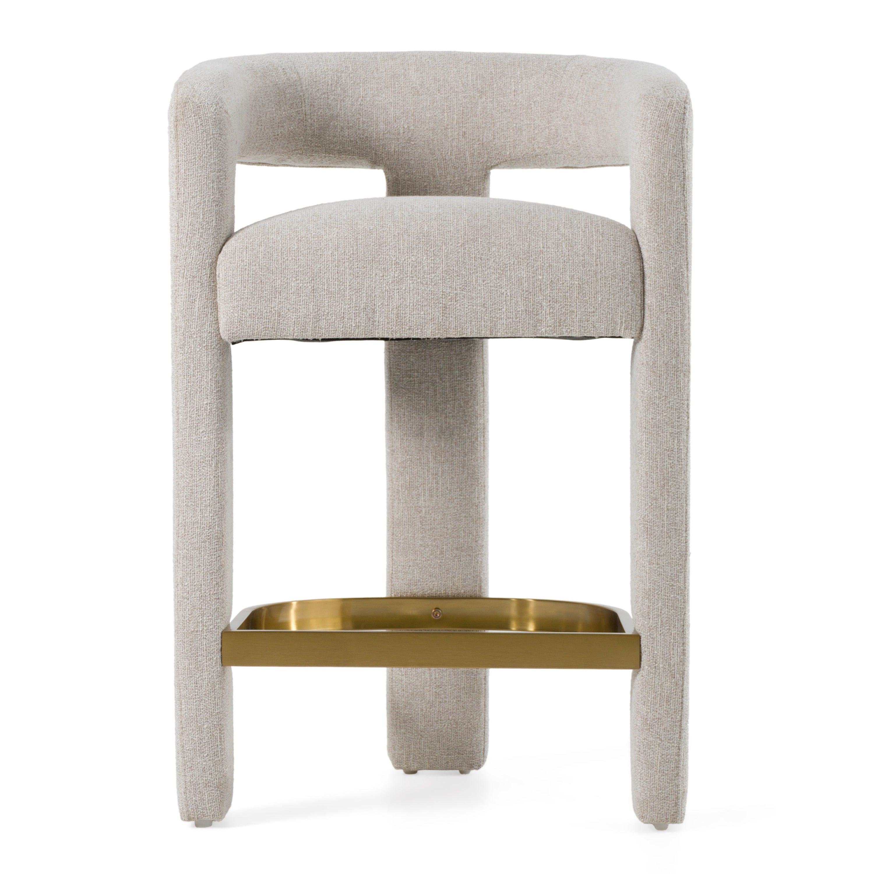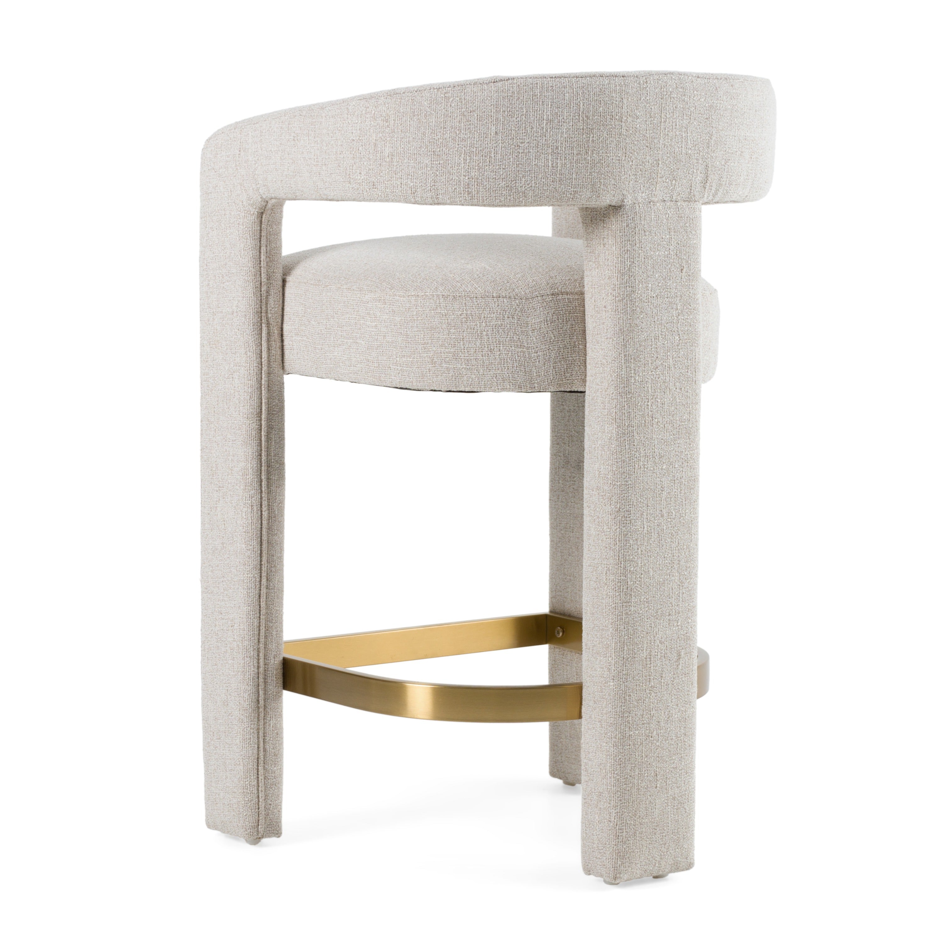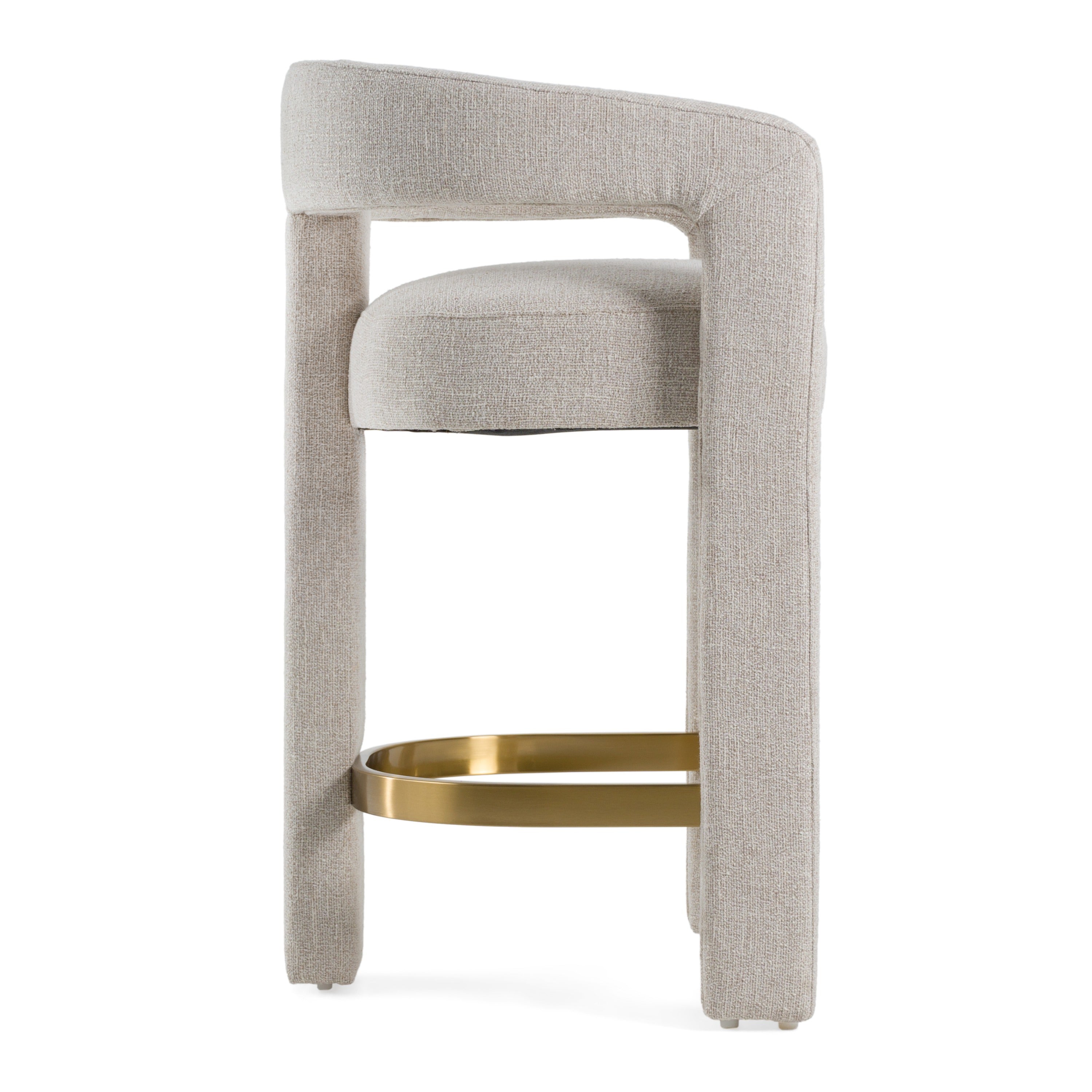 The Modrest Adam Modern Beige Fabric and Brass Counter Chair exudes elegance and contemporary charm, perfect for those seeking to elevate their space. Upholstered in soft beige fabric, this chair offers a warm, neutral tone that complements a variety of interiors. The rounded backrest and subtle curves create a seamless flow, while the brass stainless steel footrest adds a luxurious accent. Ideal for sophisticated kitchen islands or stylish bars, this piece brings a touch of understated glamour, inviting comfort and refined taste into the heart of the home.