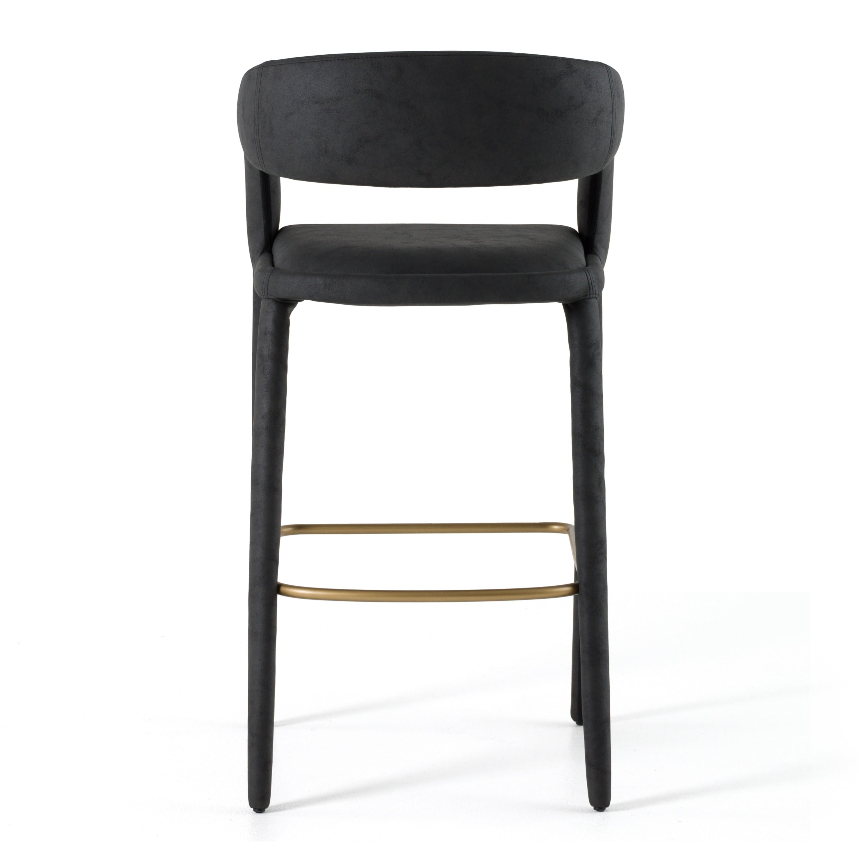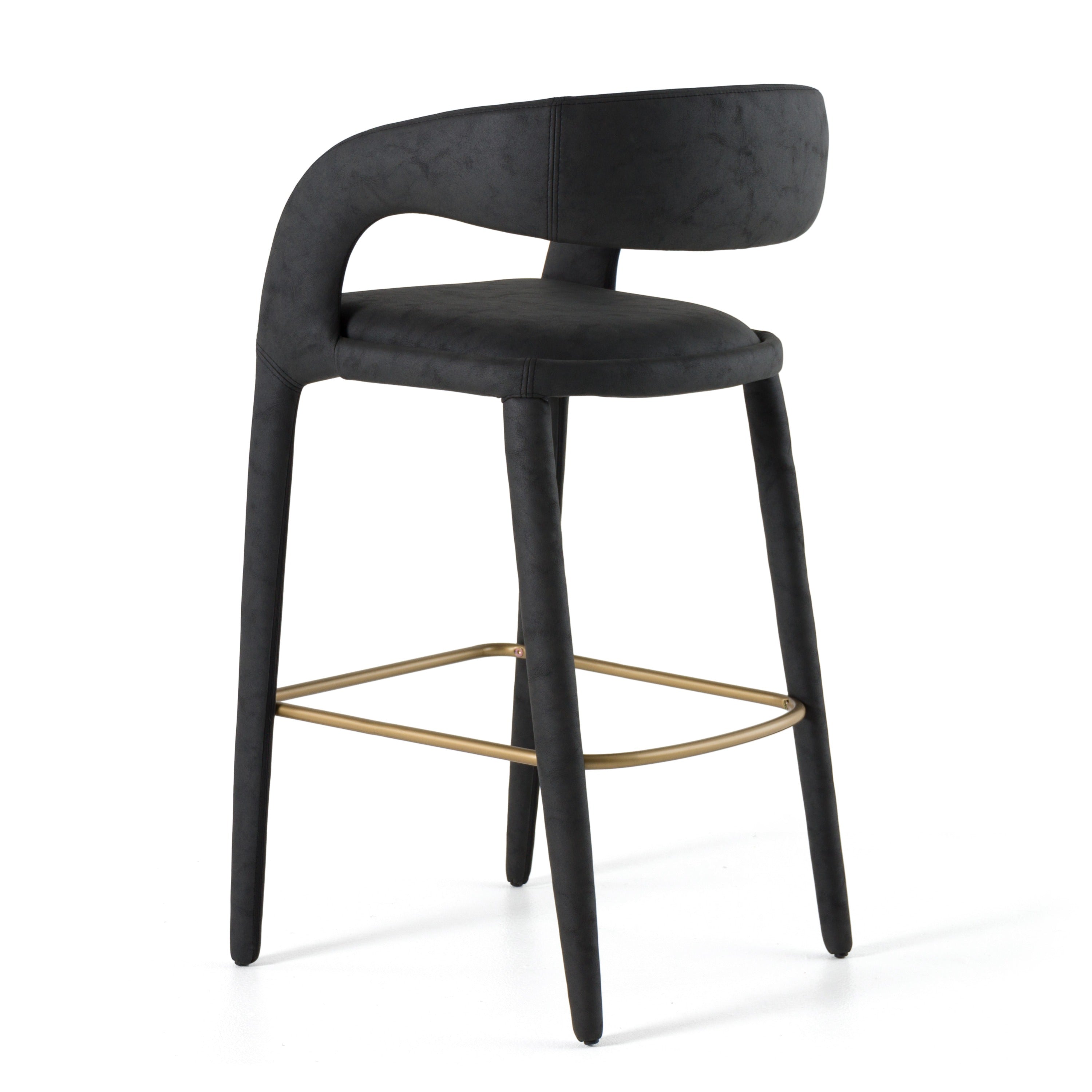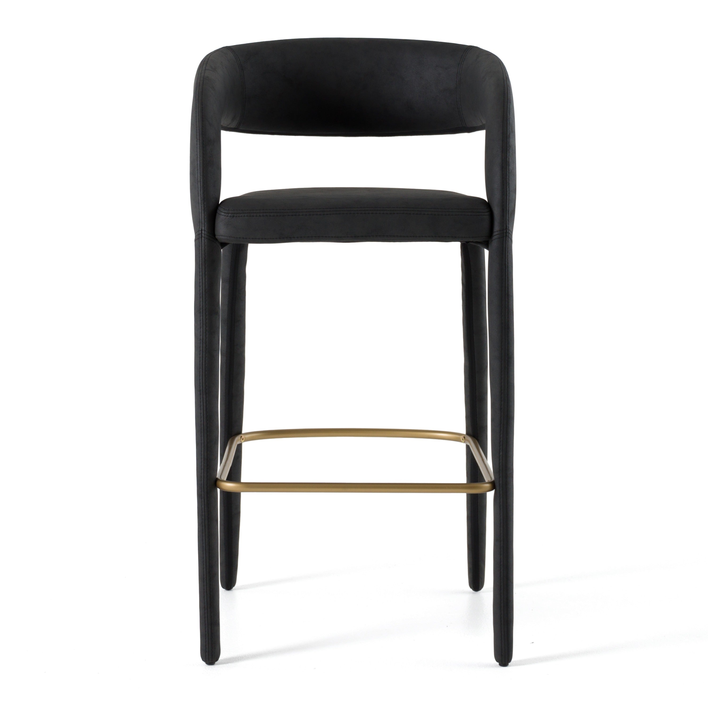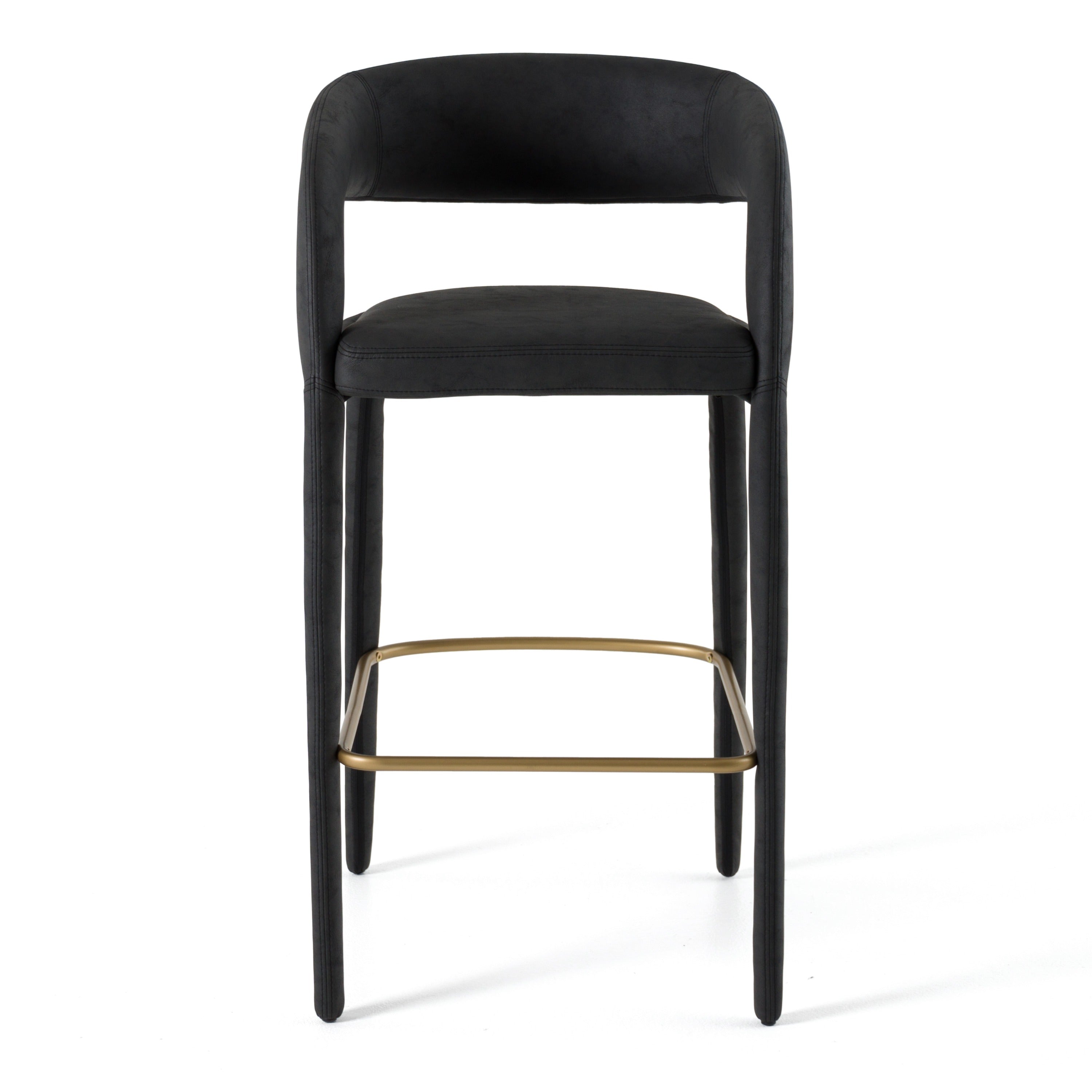 The Modrest Faerron Modern Black Leatherette Bar Chair effortlessly marries sleek contemporary design with luxurious comfort. Upholstered in rich black leatherette, this bar chair boasts an elegantly curved backrest, offering both style and support. Its minimalist aesthetic is elevated by a sturdy cast iron frame and an understated footrest, striking the perfect balance between form and function. Ideal for modern interiors, the Faerron is more than just seating—it s a statement piece that brings a sophisticated edge to any space, inviting you to experience everyday luxury in your home.