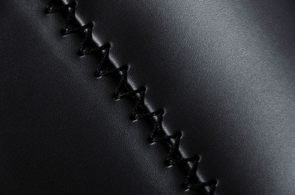 The Hooper Bar Stool is a modern and industrial stool that is sure to turn heads in your home. The brushed stainless steel legs and crossbar contrast perfectly with the deep black of the leather-like upholstery. The curvilinear structure of the back and seat supports your body in a very ergonomic way. Sure to shine in a mid-century, industrial kitchen.
