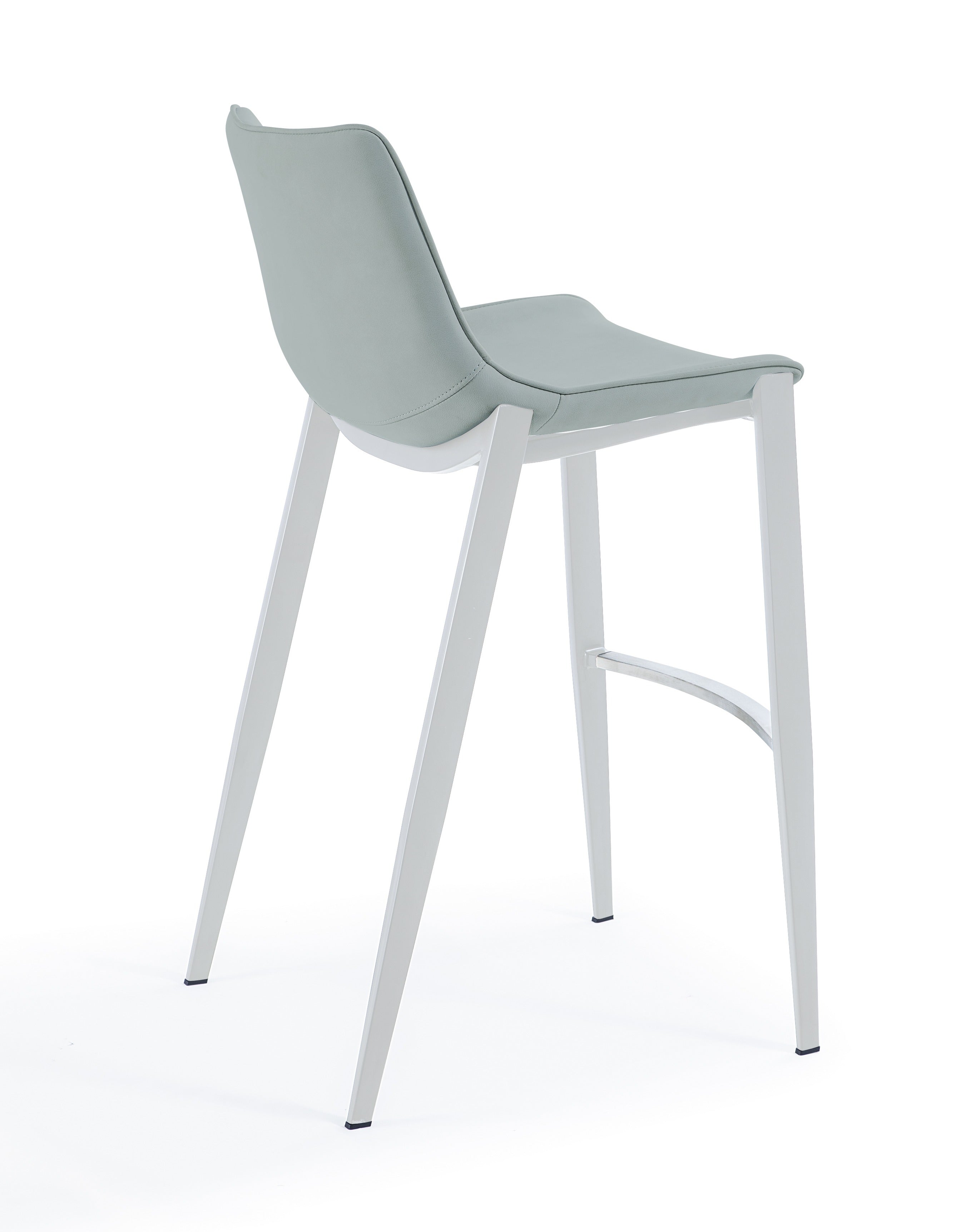 Modern style merges with everyday casual with the Jane Counter Chair. This sleek chair pulls up to the bar perfectly thanks to its slender profile. It's curved seat is comfy and is upholstered in faux grey leather with seamless stitching. White coated stainless steel legs come with protective plastic feet to safeguard your flooring from scratches.