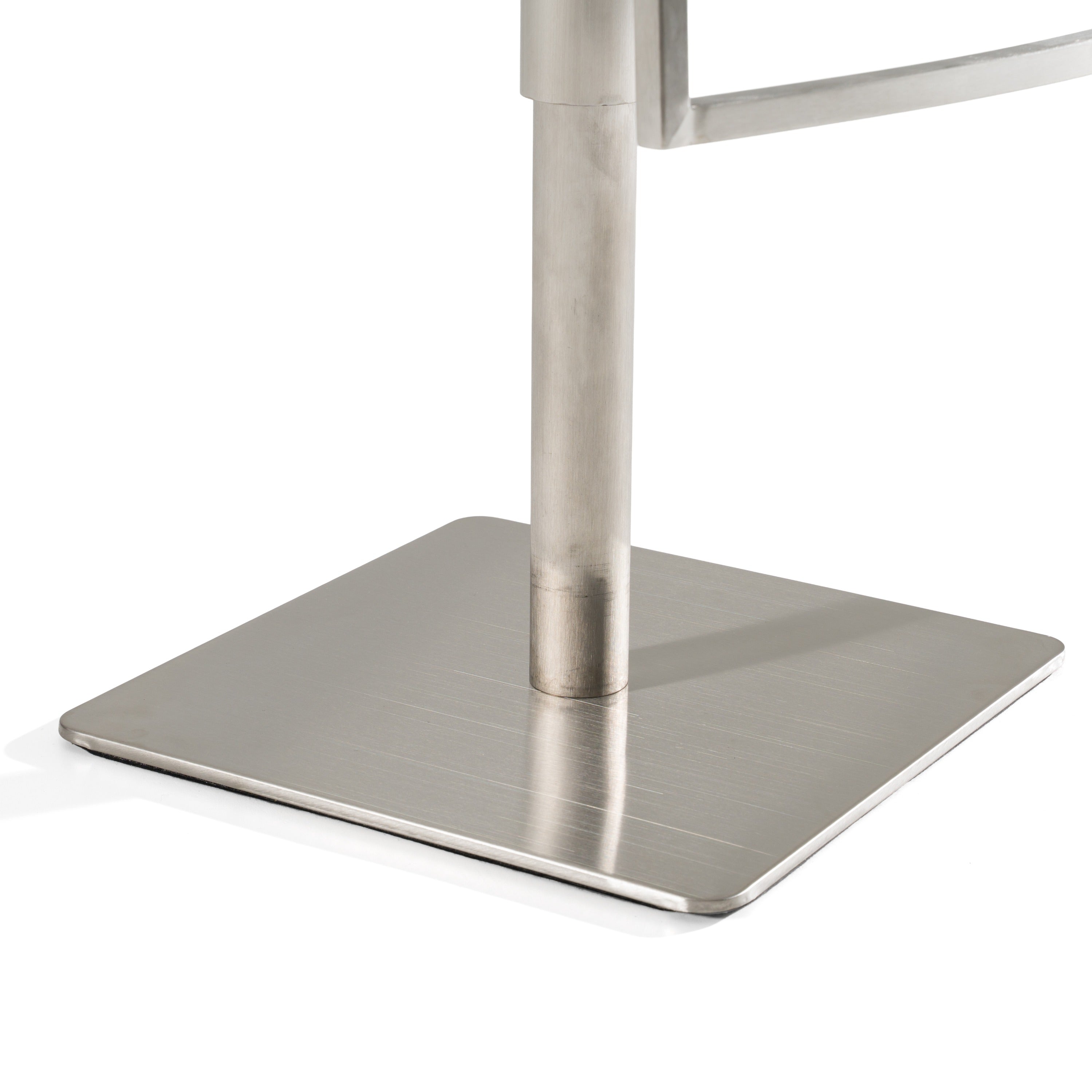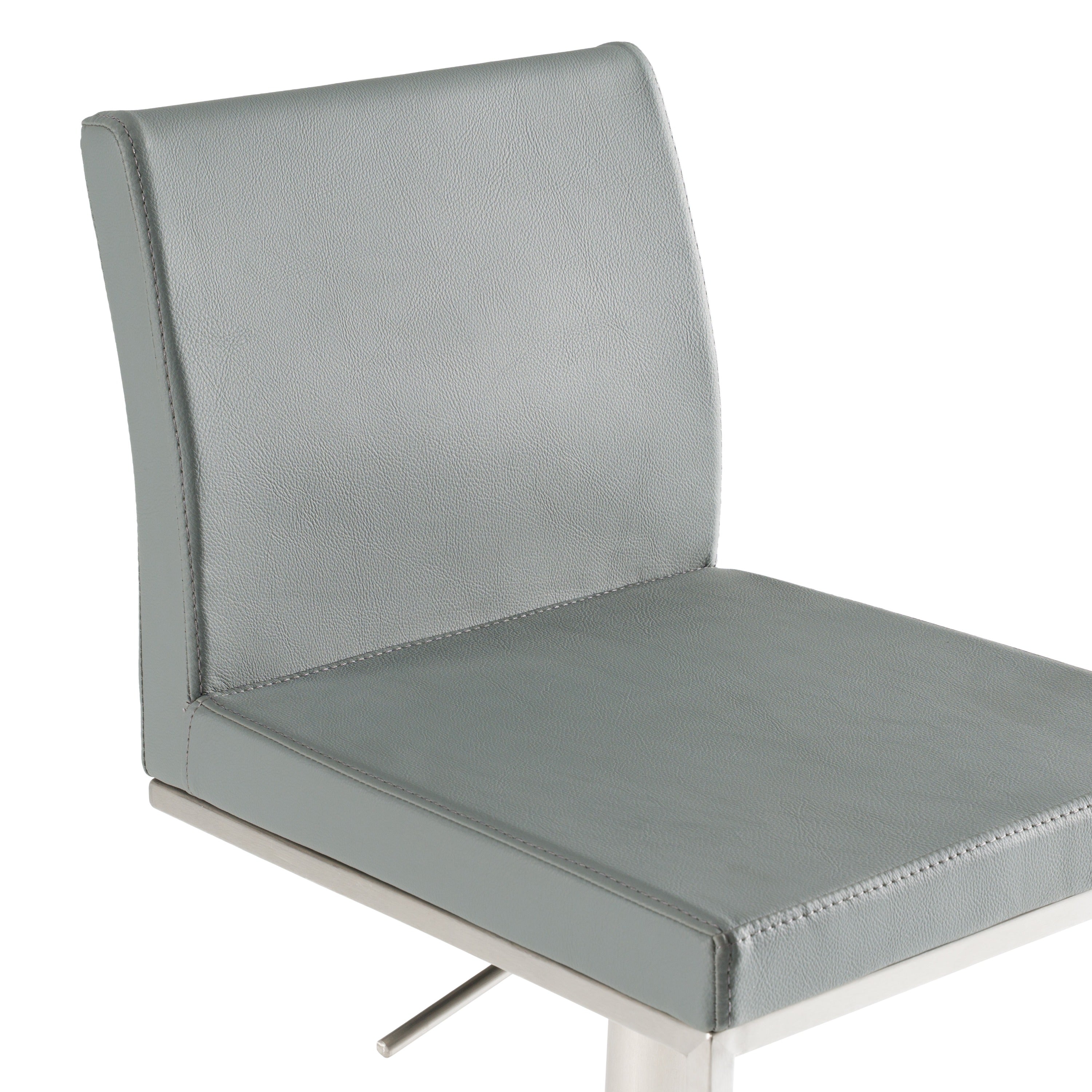 The Folsum Bar stool is simple and contemporary, sleek and chic. The dark grey leatherette uoholstery is beautifully harmonized with the chrome base and footrest. The seat swivels, and the pneumatic lift mechanism is controlled by a lever below the seat, that allows for height adjustability.