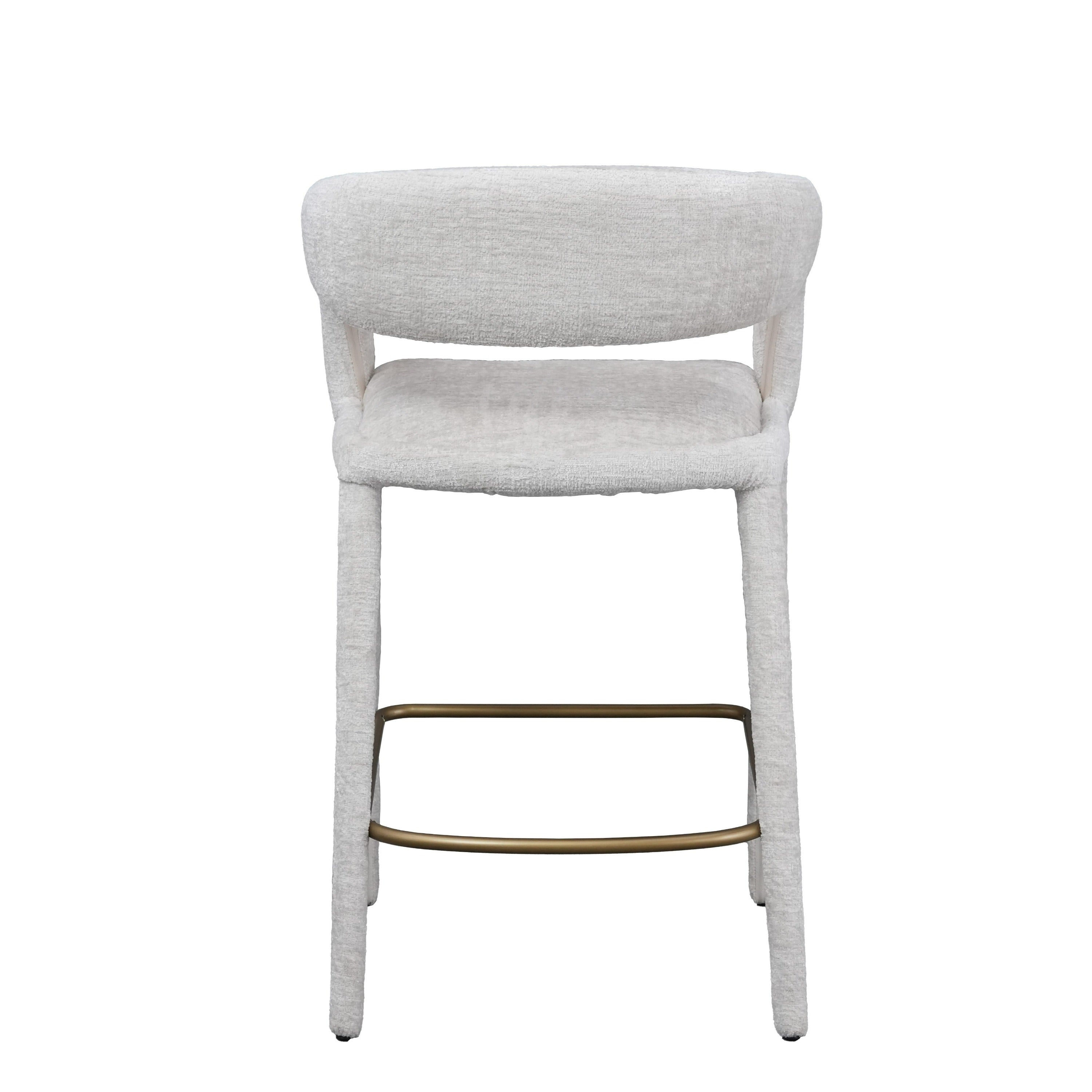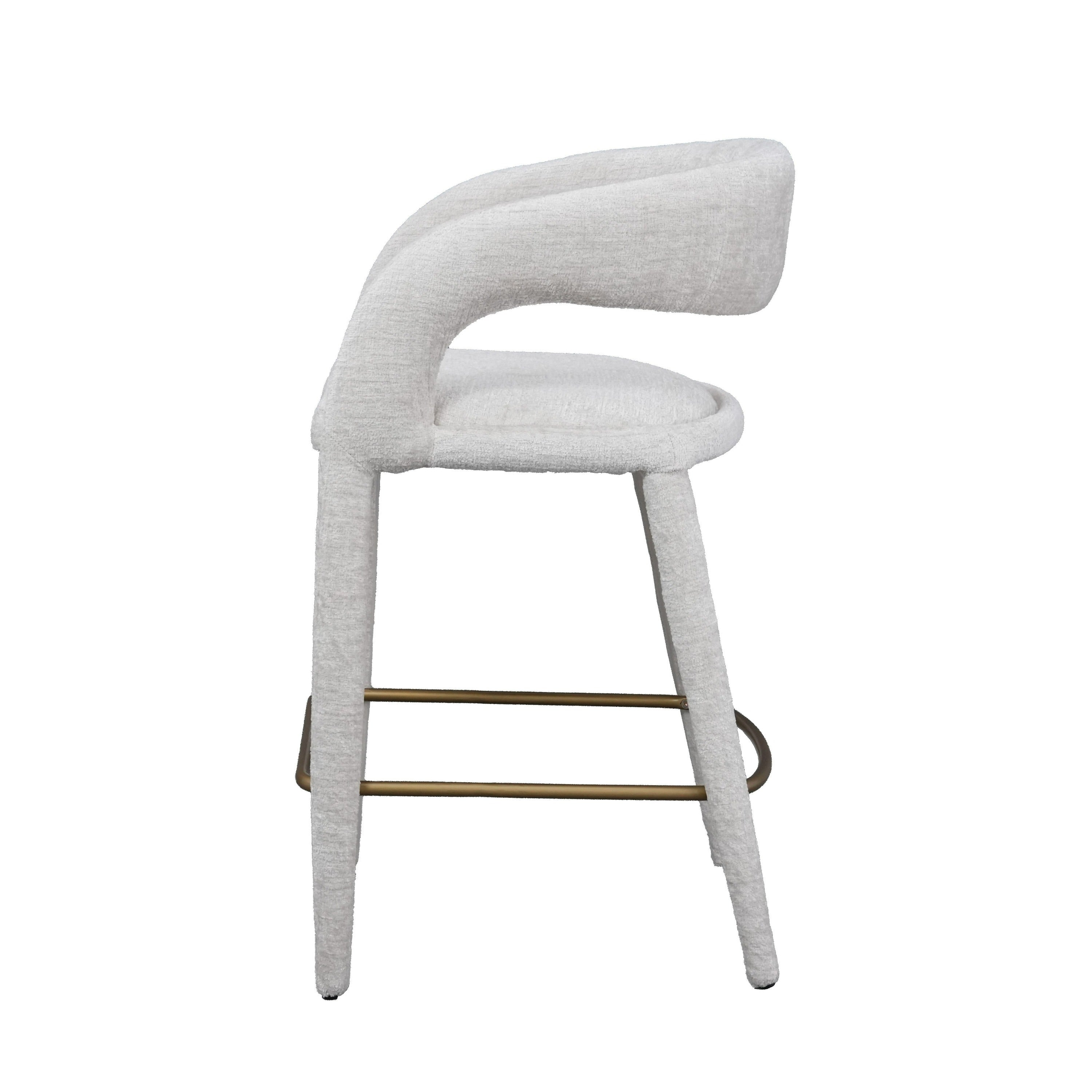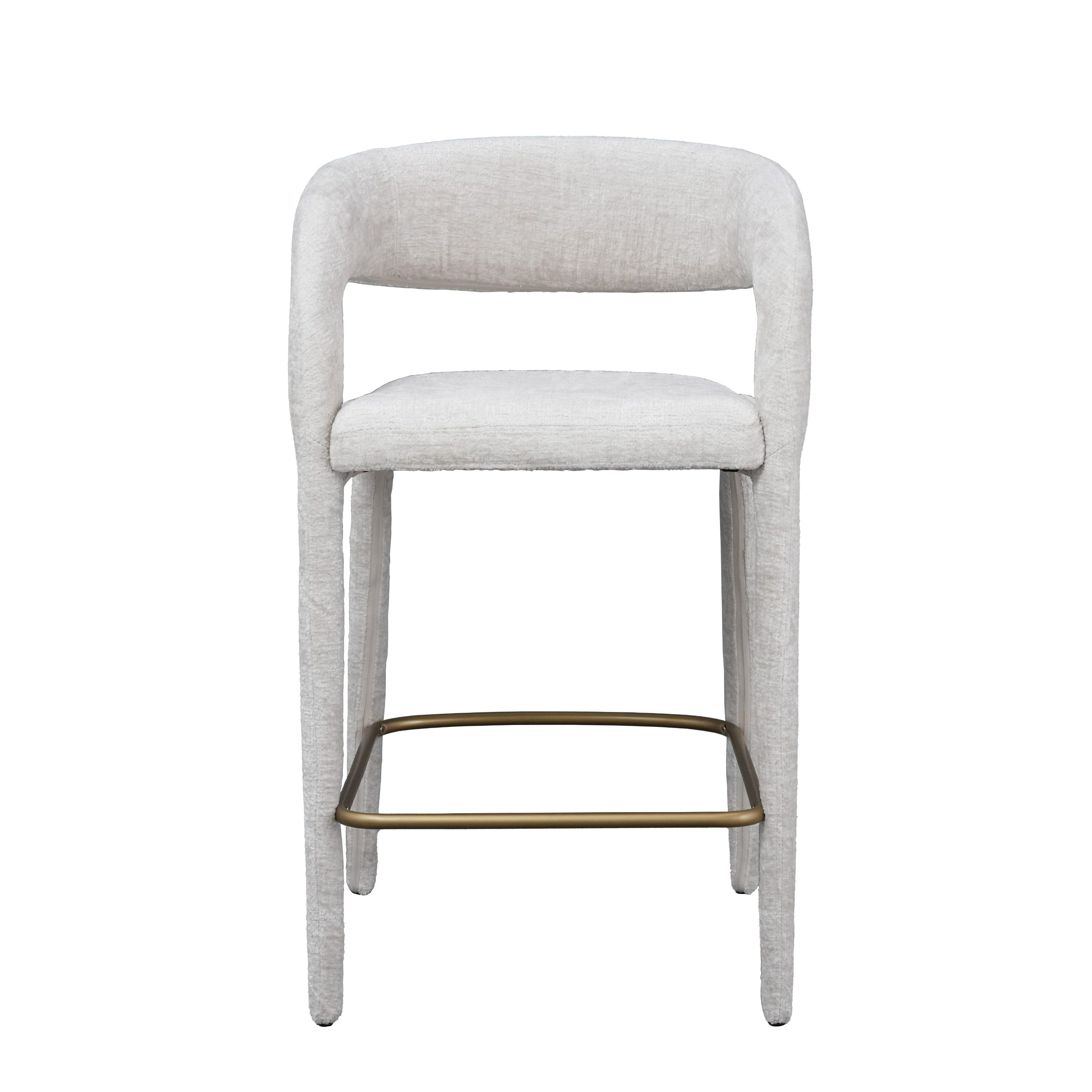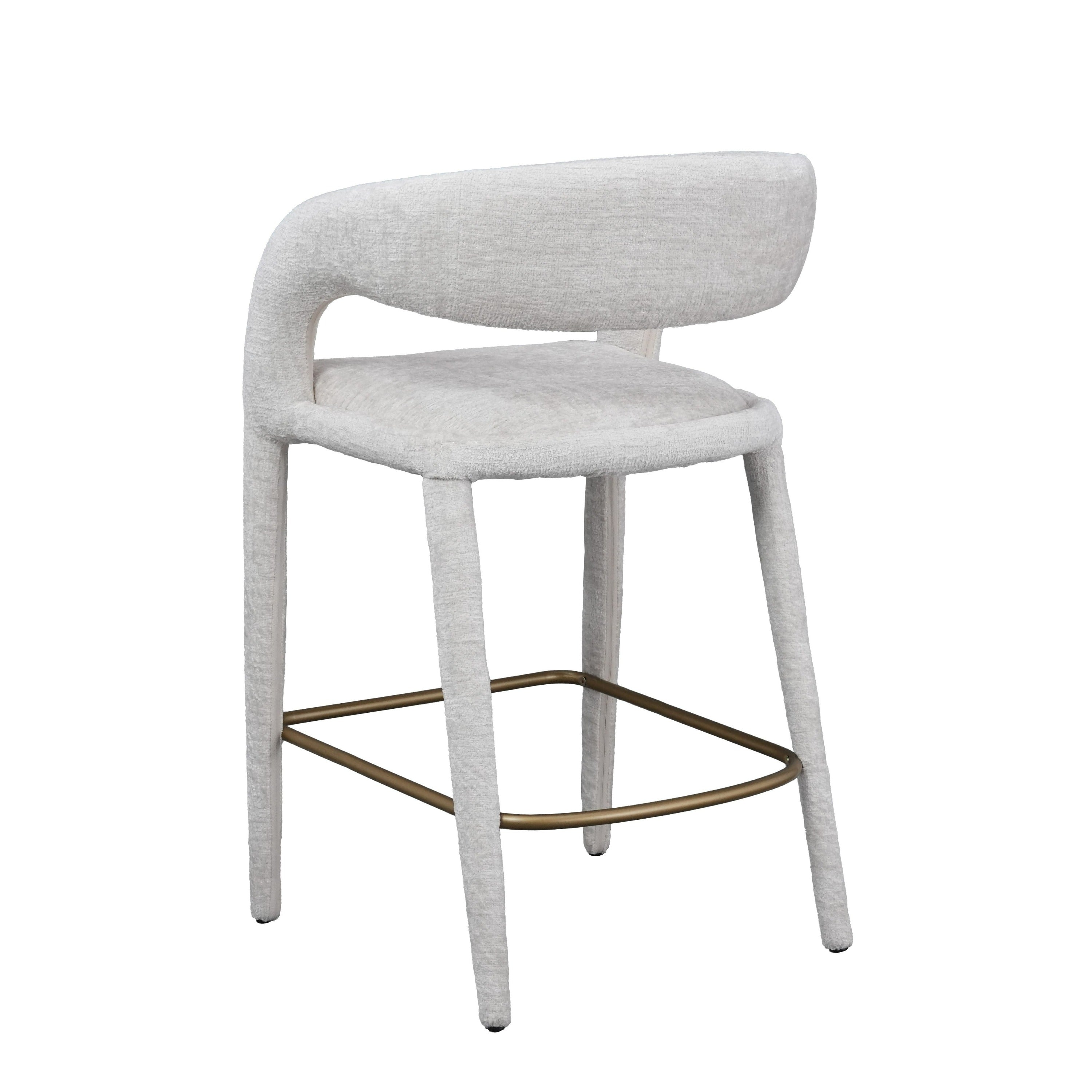 The Modrest Faerron modern light grey fabric counter chair exudes a chic, contemporary style perfect for any modern bar or kitchen setting. Its smooth, curvaceous silhouette features a gently rounded backrest and plush seating, ensuring comfort without compromising elegance. The light grey fabric adds a soft, inviting touch, while the sleek metal footrest enhances both functionality and aesthetic appeal. This eye-catching counter chair is designed to complement a variety of decor styles, making it a versatile choice for your living space.