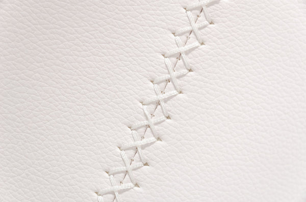 The Ithaca Bar Stool has a mid-century silhouette with an industrial texture. The black powder-coated legs add drama against the white eco-leather upholstery. Exposed stitch detail lines the edges of the chair adds the perfect eye-catching element. A silver foot bar adds another layer of pattern. Perfect for a modern or traditional home.