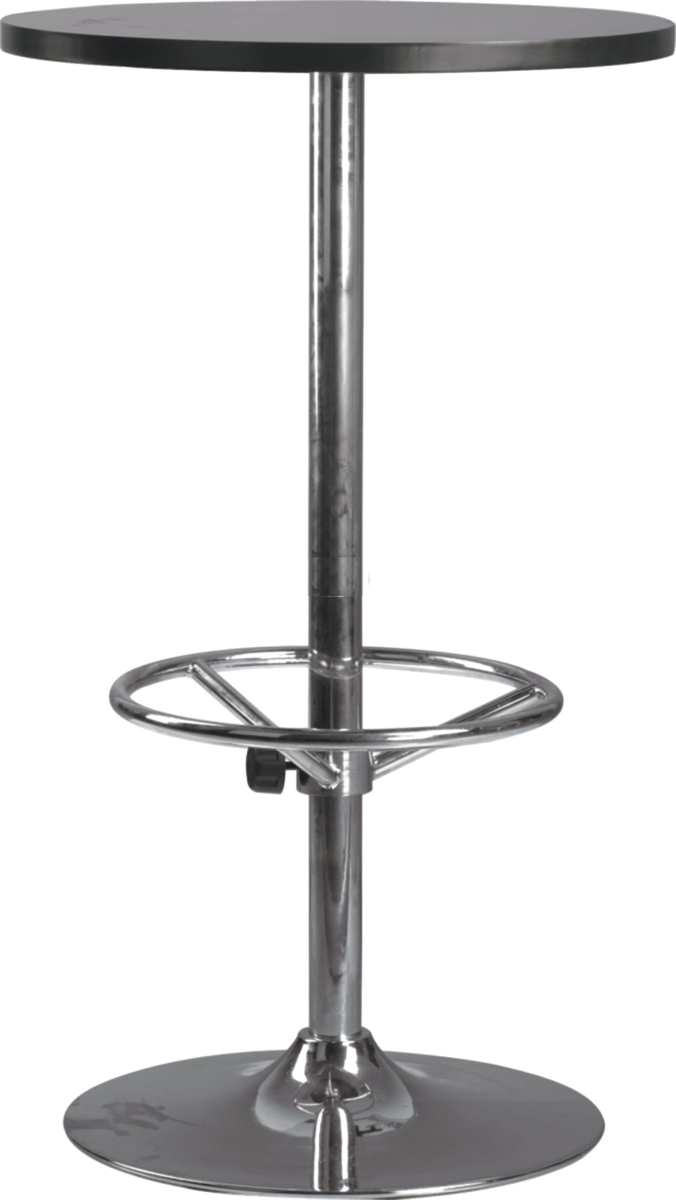 The Modrest FS-3-03A modern black bar table presents a refined adjustable height black top supported by a sleek chrome post. It features a round footrest for better foot support and a circular chrome base. Excellently constructed, this black bar table is ideal for the patio and a cozy conversation corner.