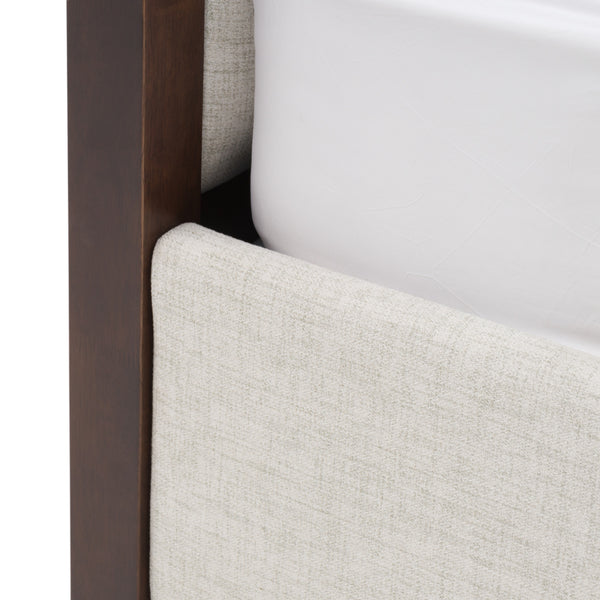 The Modrest Manhattan Contemporary Canopy Cherry Bed is a true statement of elegance and modern luxury. Its bold canopy frame in a rich cherry finish offers an inviting architectural presence, while the light grey upholstered headboard brings a soft, serene contrast. The combination of solid wood craftsmanship and refined upholstery creates a bed that exudes sophistication and comfort, transforming any bedroom into a tranquil sanctuary. Perfect for the discerning homeowner, the Modrest Manhattan elevates the art of restful living, blending style and relaxation in a timeless design.