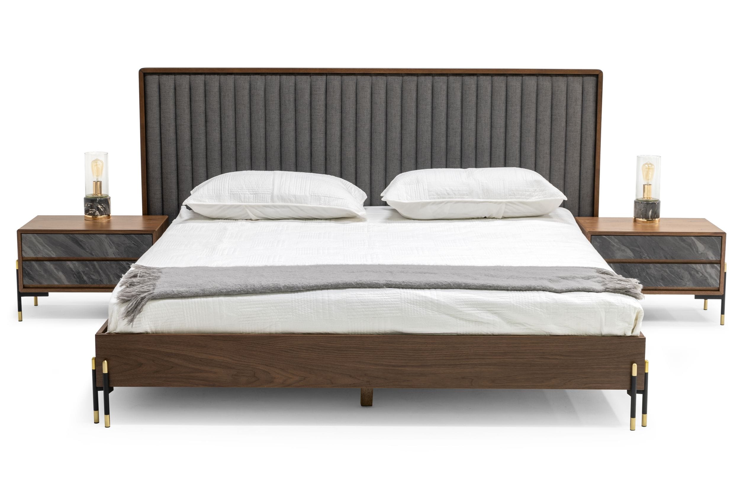 Nova Domus Metcalf Mid Century Walnut & Grey Bed Model VGMABR-120-WAL-BED
