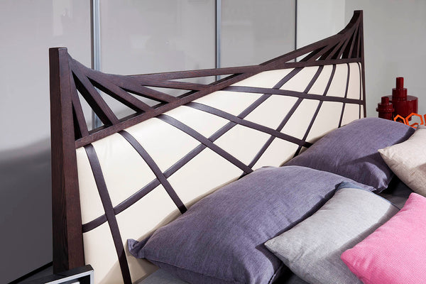 The Prism bed reflects an interesting spectrum composition while using brown oak wood for the frame and light grey and brown bonded leather upholstery for the headboard. The Prism showcases the best use of both minimalism and aesthetically pleasing design to bring the completed look together.